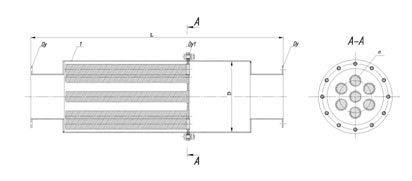 Корпус ловушки и патрубок изготовляются из углеродистых сталей. На внутреннюю поверхность корпуса и патрубка наносится коррозионно-стойкое покрытие. Фильтроэлементы и монтажный диск – из коррозионностойких сталей. Конструкция может быть изменена.